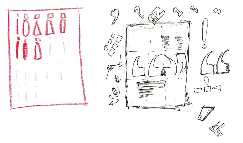 The rest of the system focused on the impact our words have on others. I began juxtaposing punctuation with the less fortunate outcomes of our words, such as death. It was important for me to illustrate that our words have an effect on the people around us, and that they are just as much a threat as the weapons people use everyday.
