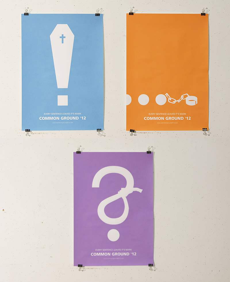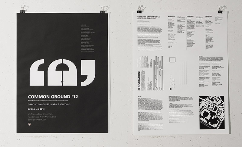 The Common Ground Conference is a place for people to get together and try to conqueror the international issues of our current global society with a focus on multi cultural communication. We were asked to design collateral that spoke to the core issues that would be addressed at the conference.